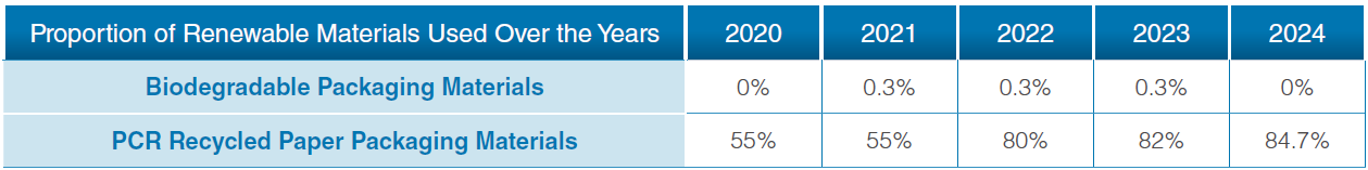 Arcadyan also uses biodegradable materials such as industrial starch, plant fibers, and molded pulp foam for internal packaging components, enabling composability and natural degradation. However, in 2024, due to customer demands, these materials were replaced with more cost-effective and readily available paper-based alternatives. Going forward, Arcadyan will continue to monitor developments in sustainable materials and seek solutions that balance environmental and economic performance, supporting its circular economy and carbon reduction goals.