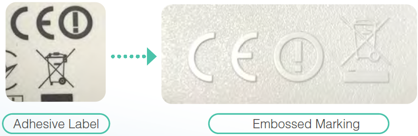 To enhance product recyclability, Arcadyan simplifies material composition by prioritizing single-material designs and reducing the use of mixed materials. For packaging, product information is printed directly on the outer box to minimize paper usage. Accessory bundling has shifted from traditional plastic ties to paper-based alternatives to reduce environmental impact. The product foot pads are designed to be replaceable, improving repair and refurbishment convenience and extending product lifespan. Additionally, electronic directive icons and EU compliance markings are integrated directly into the product housing, streamlining the manufacturing process and facilitating recycling. These measures reflect Arcadyan's comprehensive implementation of sustainable design and its strong commitment to environmental responsibility.