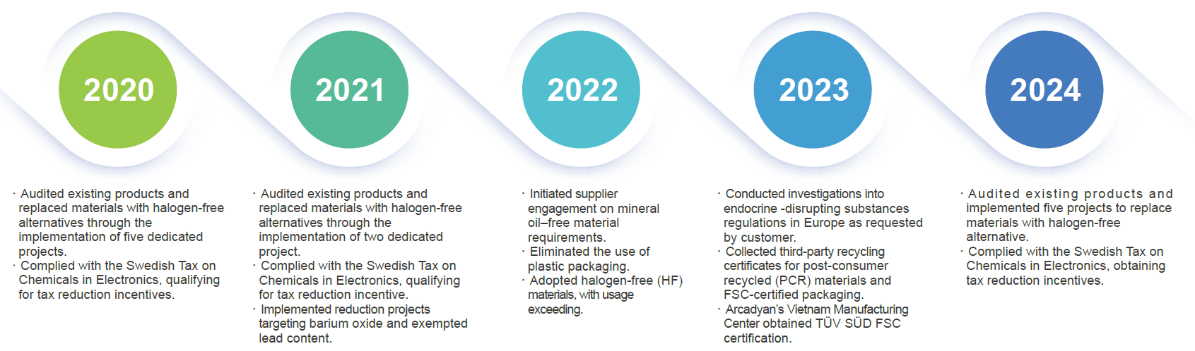 Arcadyan will continue to reinforce its mineral oil-free material management system to reduce chemical risks and promote environmentally responsible, health-conscious, and legally compliant sustainable product development.