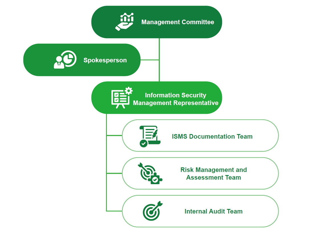 Under the committee, three dedicated working groups have been established: the Document Editing Team, the Risk Management and Evaluation Team, and the Internal Audit Team. These teams are respectively responsible for the development and maintenance of information security documentation, risk assessments and control measures, and internal audits with corrective action tracking—together forming a comprehensive governance mechanism. The Information Security Management Representative provides regular reports to the committee every six months, covering management performance, emerging issues, and strategic directions. This ensures that the overall information security system remains compliant, relevant, and effective on a continual basis. The Information Security Management Representative provides regular reports to the committee every six months, covering management performance, emerging issues, and strategic directions. This ensures that the overall information security system remains compliant, relevant, and effective on a continual basis.